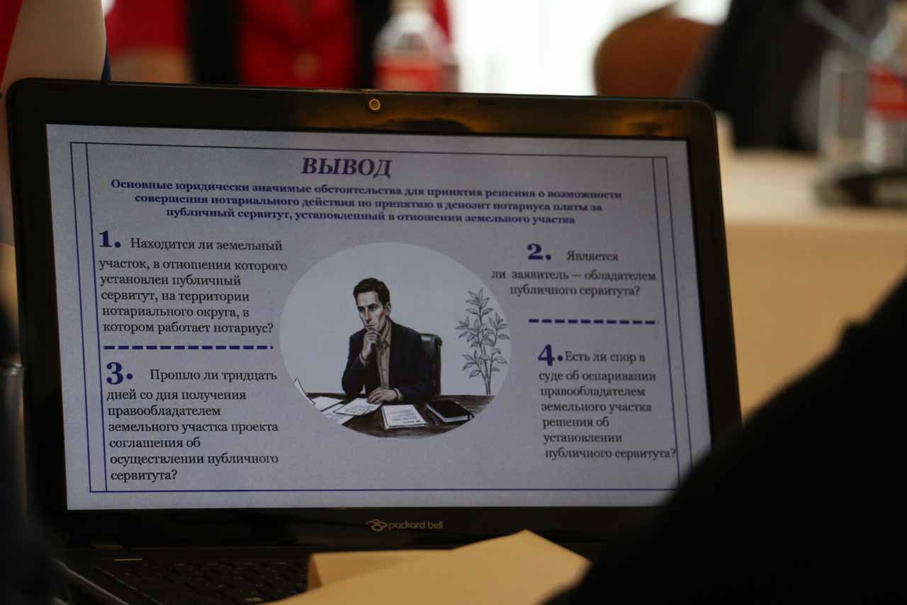 Член правления нотариальной палаты Ставропольского края, председатель комиссии НПСК по методической работе, нотариус по Шпаковскому районному нотариальному округу Анна Некрасова подробно проанализировала практические вопросы внесения в депозит нотариуса платы за публичный сервитут, установленный в отношении земельного участка.