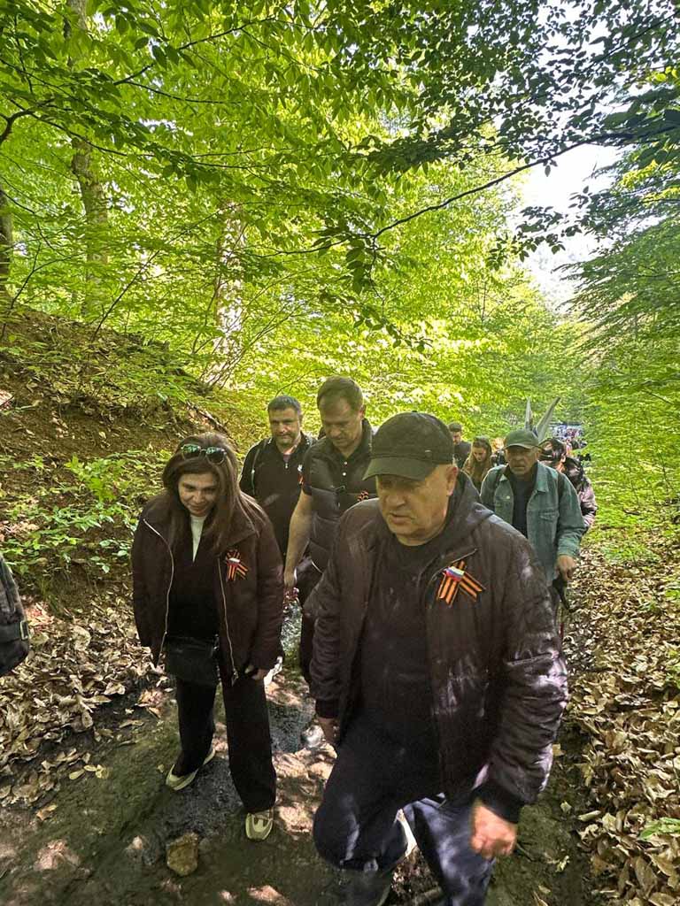 Члены Совета молодых нотариусов НПСК, члены Ассоциации юристов России Дмитрий Барышников, Виктория Блем, Олег Глотов, Михаил Курякин, Елизавета Константинова, Наталья Подъячева, Леонид Созонов и член Совета ветеранов нотариальной палаты края, председатель Пятигорского местного отделения Ставропольского регионального отделения Ассоциации юристов России Олег Строкань собрались у подножия горы Бештау, где прошел митинг, давший старт восхождению. Выстроившись в цепочку, многочисленные участники патриотического проекта двинулись в путь.